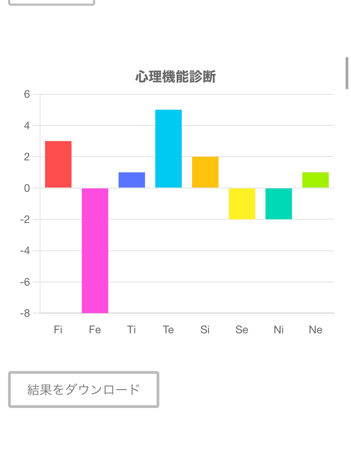 Fe,Niペアの合計値が最も高いので、この2つを選好するFe-Ni(ENFJ)、Ni-Fe(INFJ)の可能性が最も高いです。