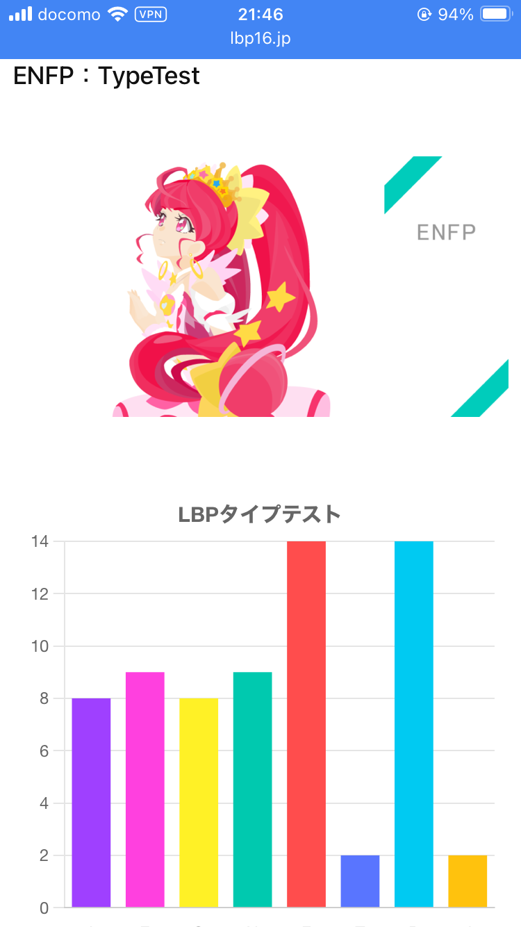 あとは上記文中リンクを見てみて、自身の性質がENxPと一致するか確認いただくか、、、LBPテストをご利用ください、こちらは心理機能とは別視点からMBTIタイプを判定しております。