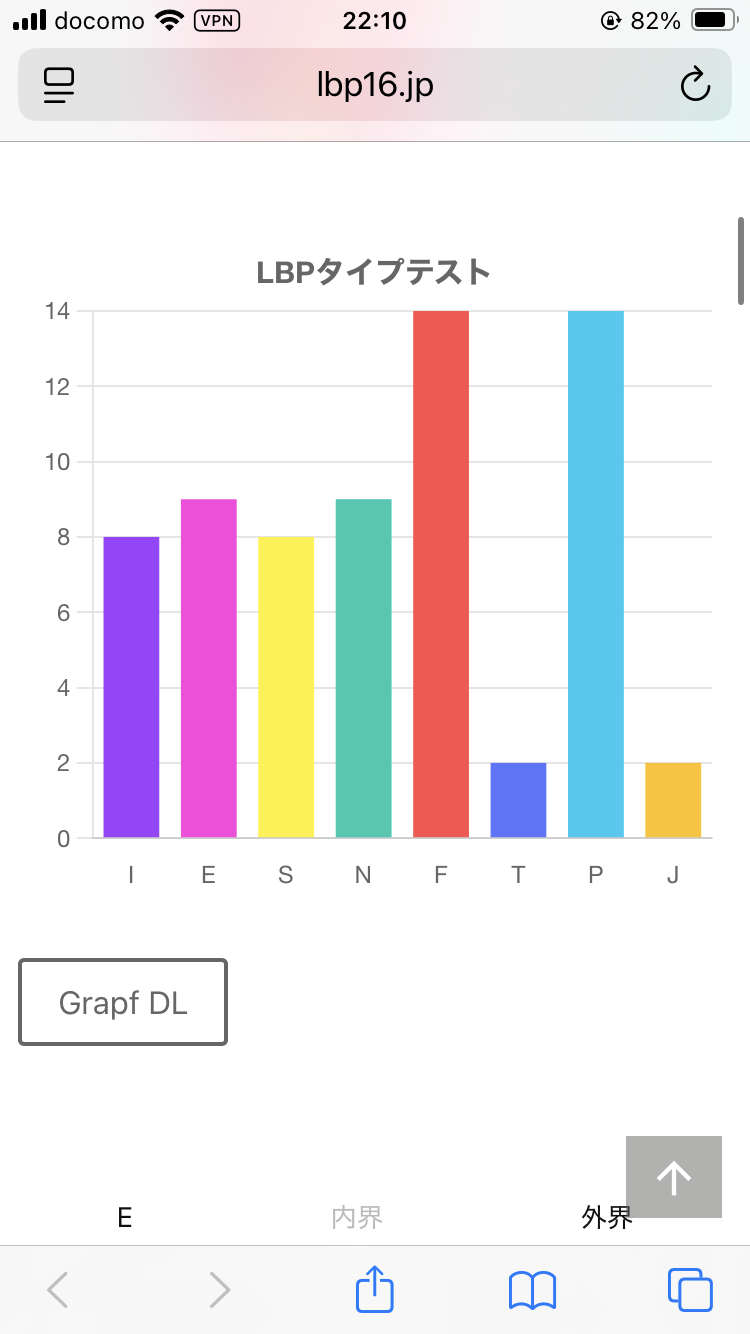 ・心理機能診断では「I/E」判定難しいところ、LBPでとてもE(たとえば「IP,IJ,EP,EJ」を判定する質問でEJ多めに選択されてます)