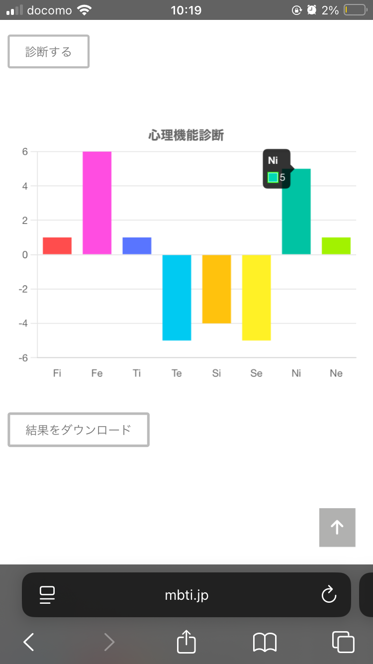 この診断テストは、Fi(内向的感情)、Fe(外向的感情)、Ti(内向的思考)、Te(外向的思考)、Si(内向的感覚)、Se(外向的感覚)、Ni(内向的直観)、Ne(外向的直観)の強さを測るものです。