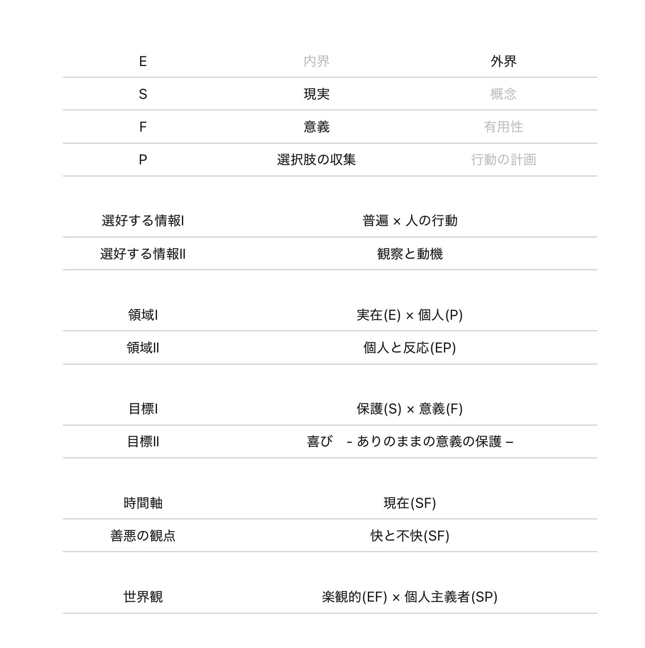 LBPとは、MBTIからなるべく「具体的な行為」を排除して、より「精神や認知の働き」にフォーカスした理論です。