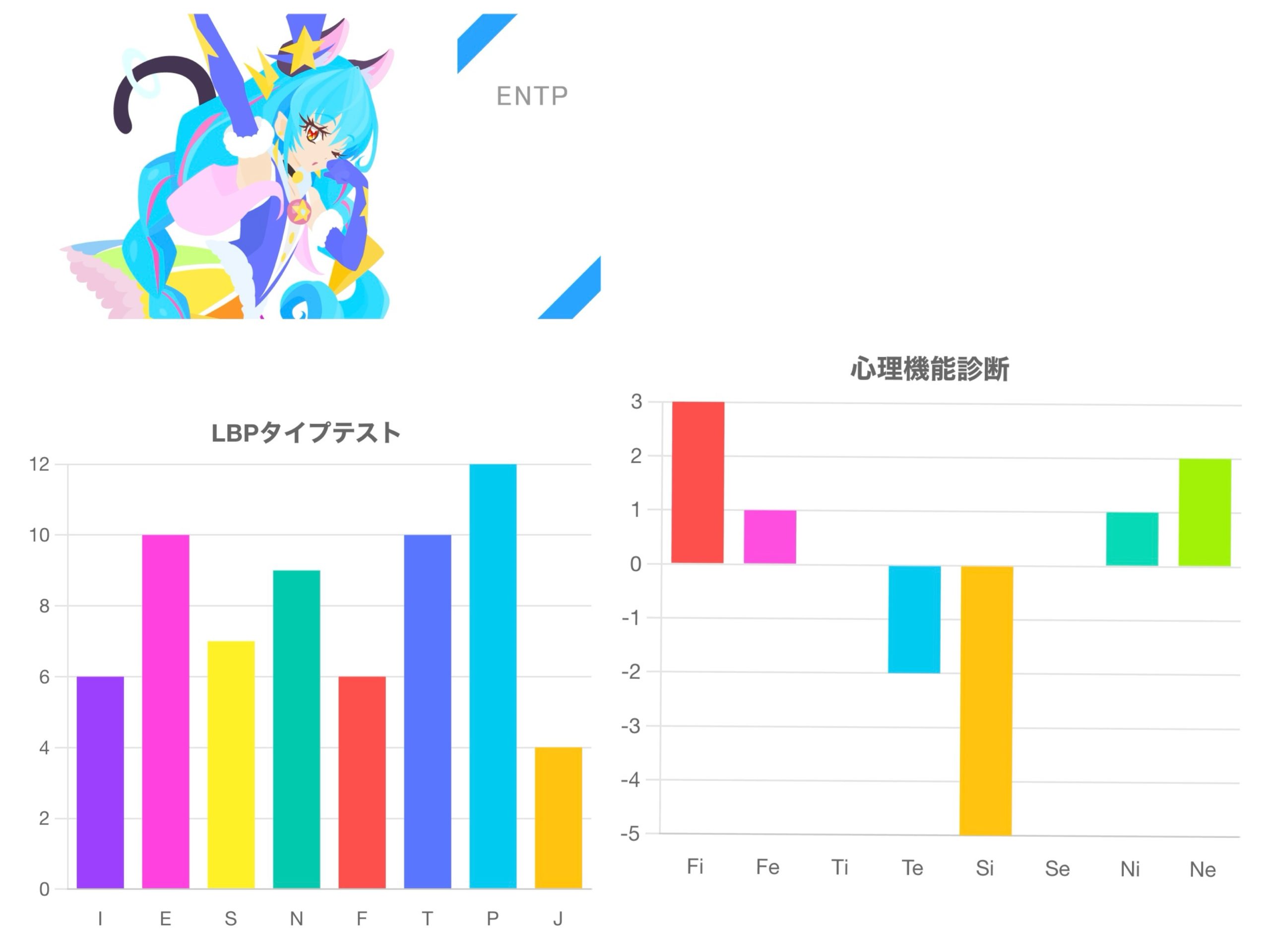 判定は以上です。極端な数値結果でありMBTIタイプの判定が難しい部分もありました、、、もしよければLBPタイプテストもご利用下さい、こちらは心理機能とは別アプローチでMBTIタイプを判定しています。
