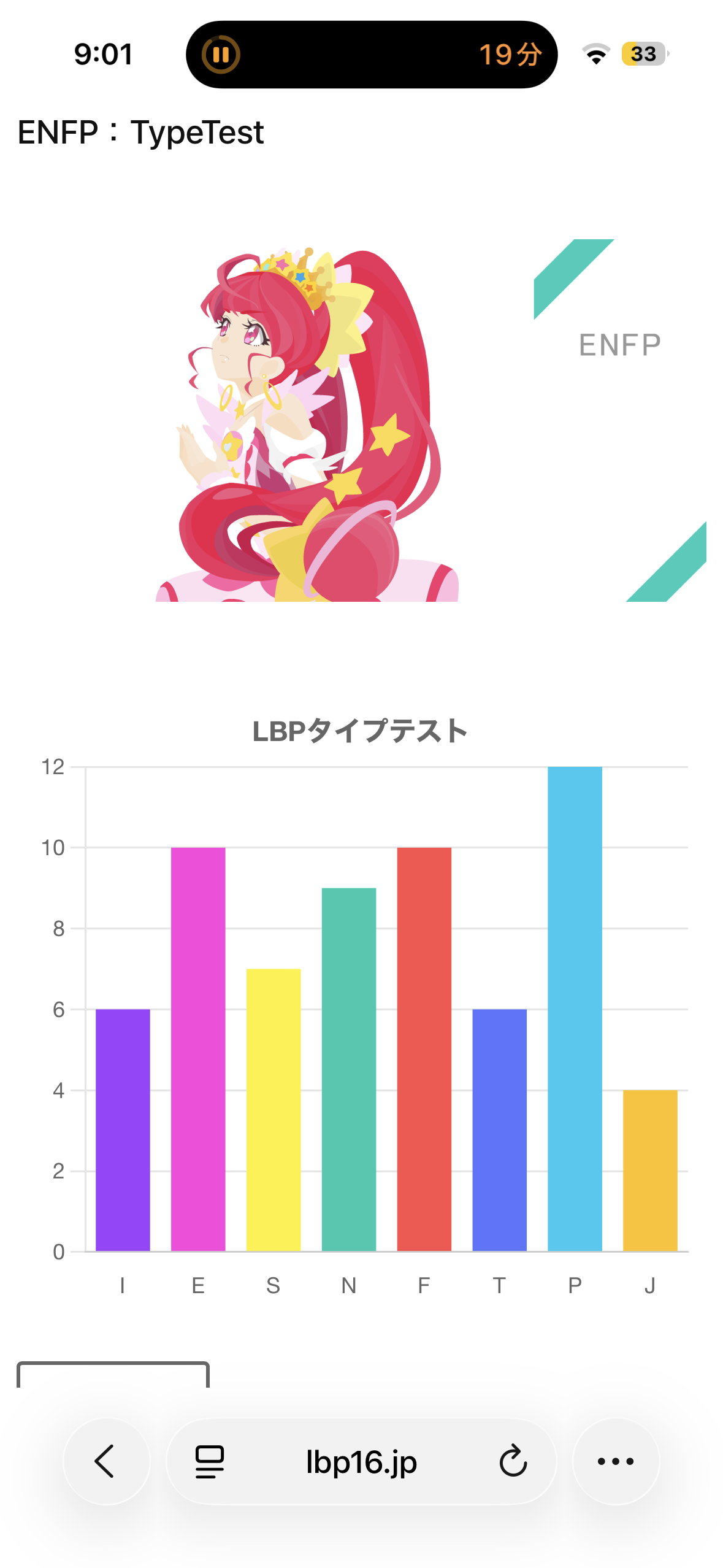 ただ、「I/E」「S/N」「F/T」が超僅差なので、確定的な判定が難しいです💦