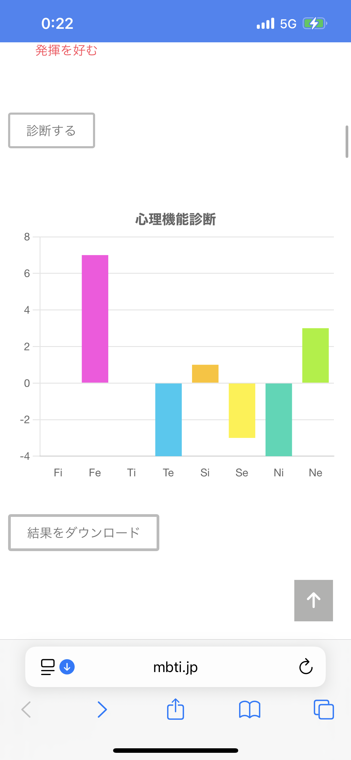 あと、MBTIの理論通りではないけれど、Fe,Seの2つが高い方はESFPの可能性が高めです。